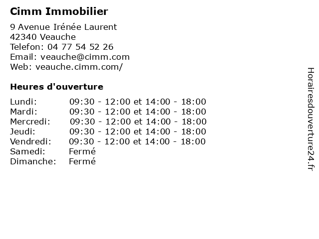 | Vendredi | 09:30-12:00 et 14:00-18:00 |