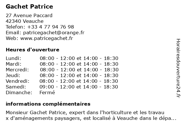 | Samedi | 09:00-12:00 et 14:00-18:30 |