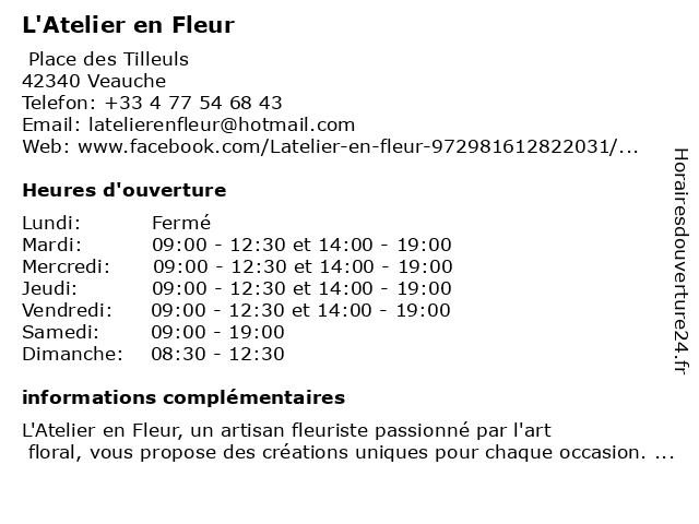 | Mercredi | 09:00-12:30 et 14:00-19:00 |