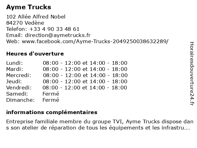 1 Ayme Elec - Vélos electriques (Distance: 5,30 km) 8 Avenue de Fontcouverte, 84000 Avignon ayme, bike, cycles, elec, electriques, location, velos, vélos 2 Volvo Trucks (Distance: 5,75 km) . Boulevard Salvador Allende, 84700 Sorgues camion, entretien, garage, lourds, réparation, truck, trucks, vente, volvo 3 Socovi - Renault Trucks (Distance: 9,24 km) 150 Rue Gallias, 84000 Avignon camion, entretien, garage, lourds, renault, réparation, socovi, truck, trucks, vente 5 Ancona Ayme Joanna (Distance: 14,78 km) 380 Chemin des Pouillaques, 84870 Loriol-du-Comtat ancona, ayme, joanna 6 Virginie Ayme, Avocat au Barreau de TARASCON (Distance: 15,66 km) 12 Place Henri Dunant, 13690 Graveson au, avocat, ayme, barreau, de, tarascon, virginie |