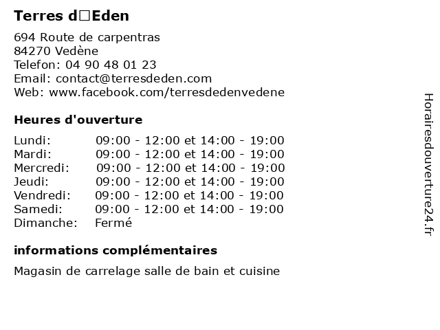 | Samedi | 09:00-12:00 et 14:00-19:00 |