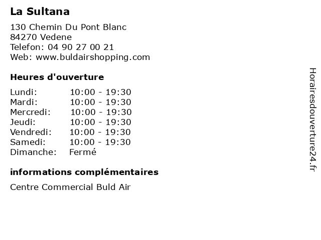 | Samedi | 10:00-19:30 |
