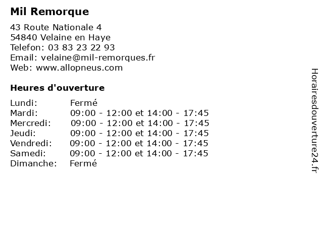 | Mardi | 09:00-12:00 et 14:00-17:45 |