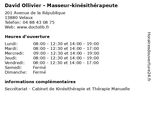 | Lundi | 08:00-12:30 et 14:00-19:00 |