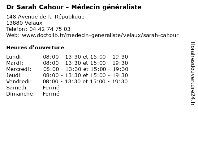| Mardi | 08:00-13:30 et 15:00-19:30 |
