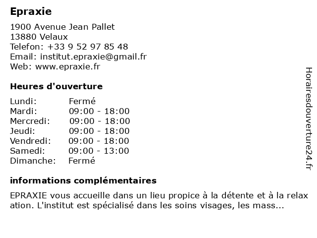 EPRAXIE vous accueille dans un lieu propice à la détente et à la relaxation. L'institut est spécialisé dans les soins visages, les massages du monde et l'onglerie et propose des soins de quali...