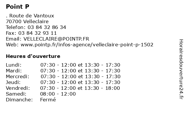 | Vendredi | 07:30-12:00 et 13:30-18:00 |