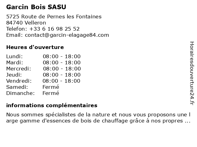 | Samedi | Fermé |