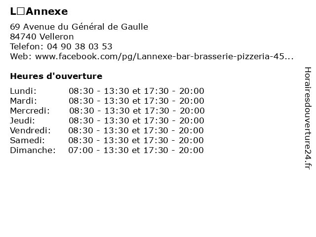 | Lundi | 08:30-13:30 et 17:30-20:00 |