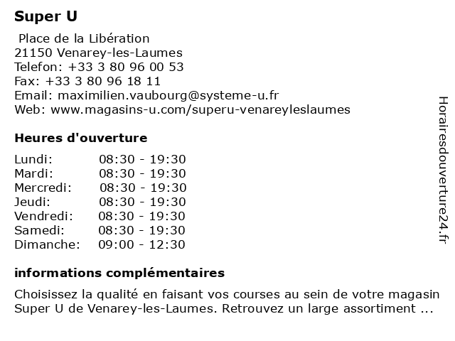 1 Opticien Venarey-les-Laumes - Optic 2000 - Centre Commercial Super U (Distance: 0,01 km) Avenue de la Gare, 21150 Venarey-les-Laumes 2000, centre, commercial, laumes, lentilles de contact, les, lunettes de soleil, lunettes de vue, optic, optic2000, opticien, opticien optic2000, ray-ban, rayban, super, venarey 2 Super U et Drive (Distance: 0,01 km) Place de la Libération, 21150 Venarey-les-Laumes drive, et, super 4 Intermarché SUPER Semur en Auxois (Distance: 10,50 km) 19 Avenue du général mazillier, 21140 Semur en Auxois auxois, en, intermarché, semur, super 5 Intermarché location Semur en Auxois (Distance: 10,50 km) 19 Avenue du général mazillier, 21140 Semur en Auxois auxois, en, intermarché, location, semur 6 CarGo Location de Véhicules SEMUR EN AUXOIS (Distance: 11,78 km) Rue du Lac, 21140 Semur-en-Auxois auxois, cargo, de, en, location, semur, véhicules |
