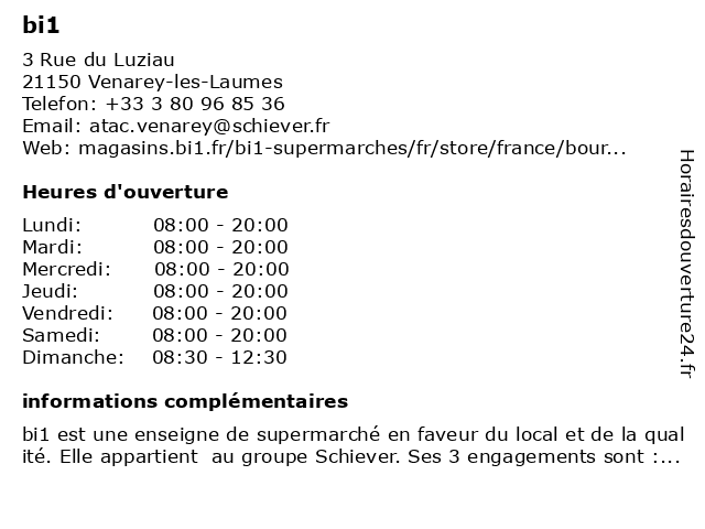 1 bi1 (Distance: 17,07 km) Lot Sainte Anne, 21350 Vitteaux bi1, bien maitriser votre budget, bien-être animal, bio, borne de recharge électrique, boucherie, boulangerie, carte de fidélité, charcuterie, engagements, filières qualité, grande distribution, local, magasins, magasins alimentaires, mieux consommer, mieux manger, poissonnerie, promotions, prospectus, proximité, pâtisserie, régional manger sain, supermarché 2 Bi1 Supermarché (Distance: 17,04 km) - Lotissement Sainte Anne, 21350 Vitteaux bi1, boisson, fruits, légumes, supermarché, supérette, viandes 3 Les Experts Meubles Alesia Venaray-les-Laumes (Distance: 0,21 km) 26 Avenue de Dijon, 21150 Venarey-les-Laumes alesia, armoire, buffet, canapé, canapé convertible, canapé relax, chaise, commode, experts, fauteuil, fauteuil relax, laumes, les, lit, literie, matelas, meuble, meuble chambre à coucher, meuble de salle à manger, meubles, rangement, séjour, table, table basse, table de repas, venaray, étagère 4 bi1 (Distance: 21,68 km) 1 Rue de La Sagesse, 21460 Époisses bi1, bien maitriser votre budget, bien-être animal, bio, borne de recharge électrique, boucherie, boulangerie, carte de fidélité, charcuterie, engagements, filières qualité, grande distribution, local, magasins, magasins alimentaires, mieux consommer, mieux manger, poissonnerie, promotions, prospectus, proximité, pâtisserie, régional manger sain, supermarché 5 bi1 (Distance: 25,54 km) Route de Vieux Château, 21460 Toutry bi1, bien maitriser votre budget, bien-être animal, bio, borne de recharge électrique, boucherie, boulangerie, carte de fidélité, charcuterie, engagements, filières qualité, grande distribution, local, magasins, magasins alimentaires, mieux consommer, mieux manger, poissonnerie, promotions, prospectus, proximité, pâtisserie, régional manger sain, supermarché 6 Maximarché (Distance: 29,53 km) 10 Rue de la Croix Berthault, 21530 Rouvray bi1, bien maitriser votre budget, bien-être animal, bio, boucherie, boulangerie, carte de fidélité, charcuterie, engagements, filières qualité, grande distribution, local, magasins, magasins alimentaires, maximarché, mieux consommer, mieux manger, poissonnerie, promotions, prospectus, proximité, pâtisserie, régional manger sain, supermarché |