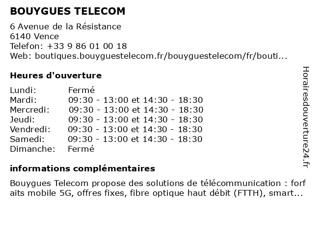 | Mardi | 09:30-13:00 et 14:30-18:30 |