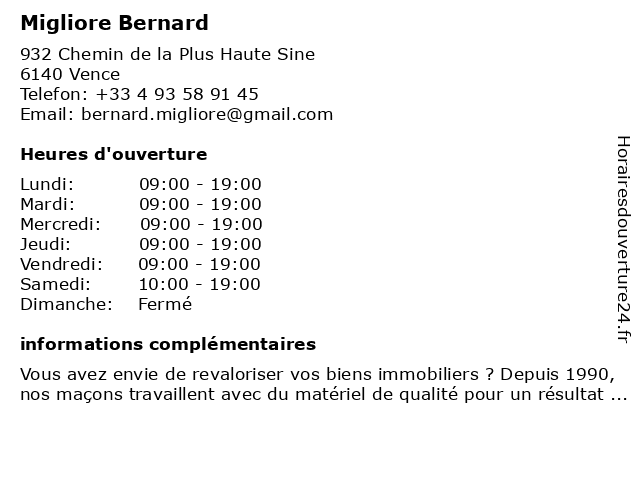 Horaires d'ouverture |