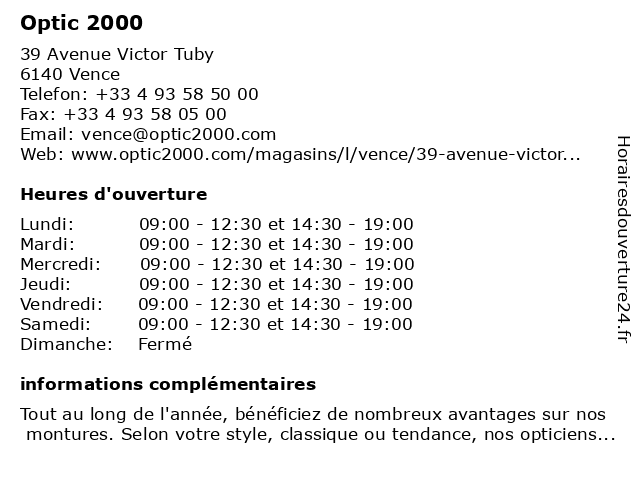 6 OPTIC 2000 (Distance: 15,95 km) 158 Route de Cannes, 06130 Grasse 2000, de la mode, lentilles de contact, lunettes, optic, optique |