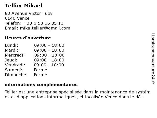 | Lundi | 09:00-18:00 |