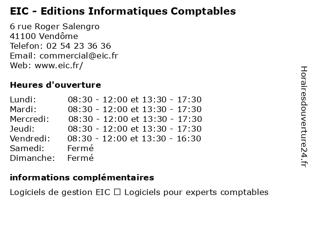 | Lundi | 08:30-12:00 et 13:30-17:30 |