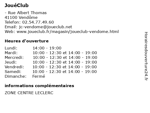 | Vendredi | 10:00-12:30 et 14:00-19:00 |