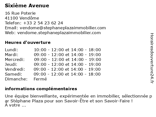 | Vendredi | 09:00-12:00 et 14:00-19:00 |