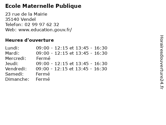 | Mardi | 09:00-12:15 et 13:45-16:30 |