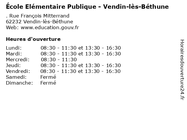| Mardi | 08:30-11:30 et 13:30-16:30 |