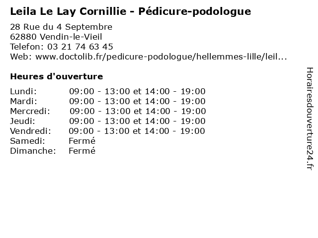 | Lundi | 09:00-13:00 et 14:00-19:00 |