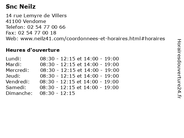 | Samedi | 08:30-12:15 et 14:00-19:00 |