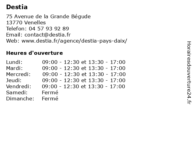 Lundi | 09:00-12:30 et 13:30-17:00 |