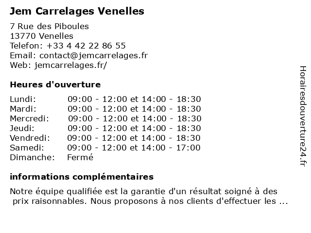 | Lundi | 09:00-12:00 et 14:00-18:30 |