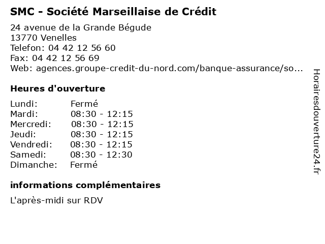 1 SMC - Société Marseillaise de Crédit (Distance: 6,84 km) 5 rue Rifle-Rafle, 13100 Aix en Provence agence, bancaire, crédit, de, marseillaise, smc, société 2 SMC - Société Marseillaise de Crédit (Distance: 7,16 km) 16 cours Sextius, 13100 Aix en Provence agence, bancaire, crédit, de, marseillaise, smc, société 3 SMC - Société Marseillaise de Crédit (Distance: 14,82 km) 15 cours Forbin, 13120 Gardanne agence, bancaire, crédit, de, marseillaise, smc, société 4 Société Générale (Distance: 0,06 km) - AV DE LA GRANDE BEGUDE, 13770 VENELLES agence, devis d'assurance automobile, générale, prêt à domicile, prêt à la consommation, société 5 SMC - Société Marseillaise de Crédit (commerçants) (Distance: 7,12 km) 40 cours Mirabeau, 13100 Aix en Provence agence, bancaire, commerçants, crédit, de, marseillaise, smc, société 6 SMC - Société Marseillaise de Crédit (Particuliers) (Distance: 7,12 km) 40 cours Mirabeau, 13100 Aix en Provence agence, bancaire, crédit, de, marseillaise, particuliers, smc, société |