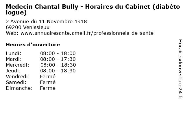 Termes de recherche pour Medecin Chantal Bully - Horaires du Cabinet (diabétologue):du, bully, horaires, cabinet, services, santé, chantal, docteur, médecin, diabétologue |