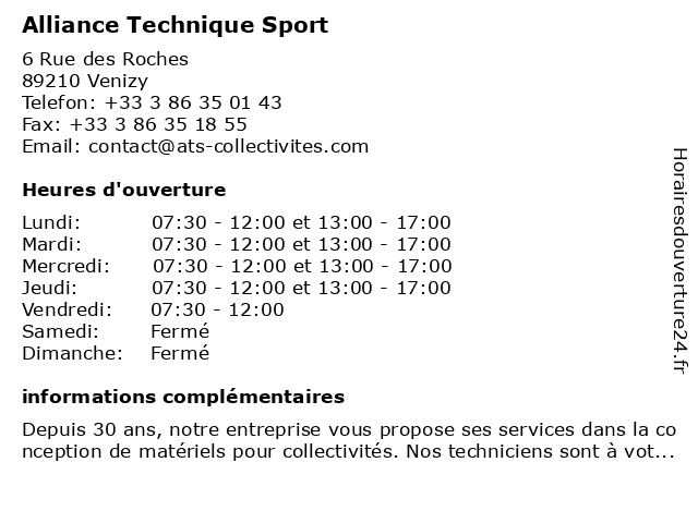 | Mardi | 07:30-12:00 et 13:00-17:00 |