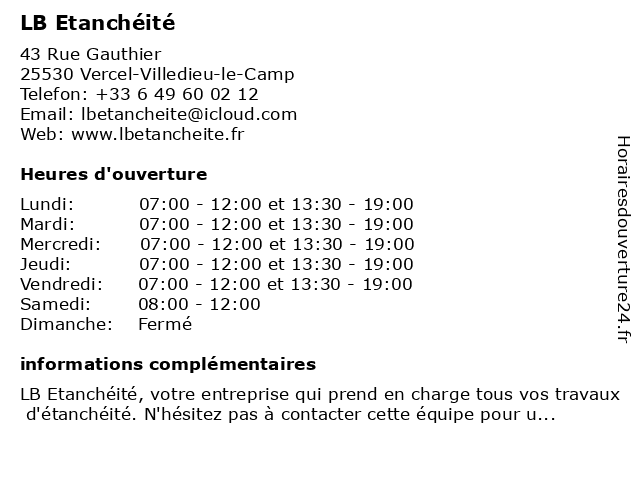 | Lundi | 07:00-12:00 et 13:30-19:00 |
