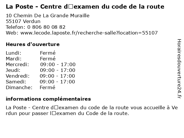 Termes de recherche pour La Poste - Centre d’examen du code de la route:poste, la, du, de, route, centre, code, d’examen, centre d'évaluation scolaire, école technique |