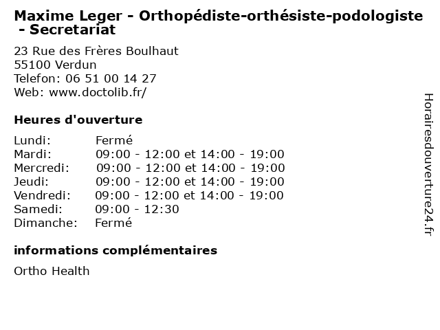 | Mardi | 09:00-12:00 et 14:00-19:00 |