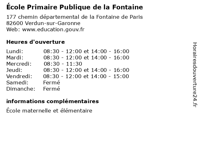 | Mardi | 08:30-12:00 et 14:00-16:00 |