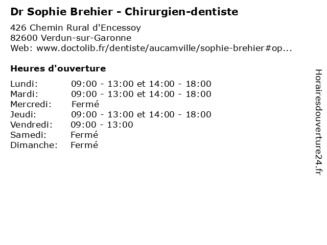 | Lundi | 09:00-13:00 et 14:00-18:00 |