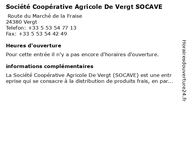 | Appeler Société Coopérative Agricole De Vergt SOCAVE | |