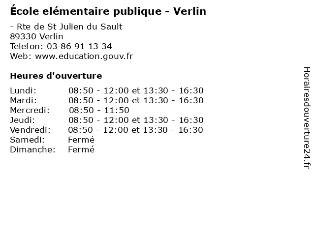 | Mardi | 08:50-12:00 et 13:30-16:30 |