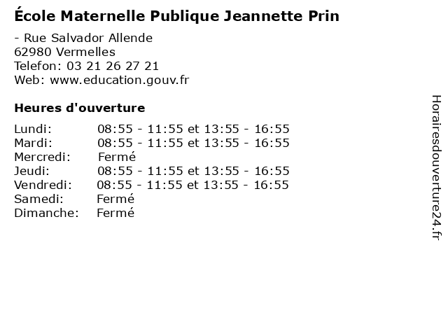 1 École maternelle publique Jeannette Prin (Distance: 4,71 km) . Boulevard de Tahiti, 62160 Grenay cours, education, jeannette, maternelle, prin, publique, services, école 2 École maternelle publique Jeannette Prin (Distance: 6,37 km) . Avenue du Prince, 62114 Sains-en-Gohelle cours, education, jeannette, maternelle, prin, publique, services, école 3 École maternelle publique Jeannette Prin (Distance: 6,61 km) . Rue Salvador Allendé, 62980 Vermelles cours, jeannette, maternelle, prin, publique, services, école 4 École Maternelle Publique Jeannette Prin (Distance: 16,72 km) - Rue d'Aquitaine, 62320 Drocourt cours, education, jeannette, maternelle, prin, publique, services, école 5 École primaire publique Jeannette Prin (Distance: 7,89 km) 7 Rue Arthur Lamendin, 62530 Hersin-Coupigny cours, education, jeannette, primaire, prin, publique, services, école 6 École maternelle publique Prin-Cotton (Distance: 11,66 km) . Rue des Montagnards, 62210 Avion cotton, cours, education, maternelle, prin, publique, services, école |