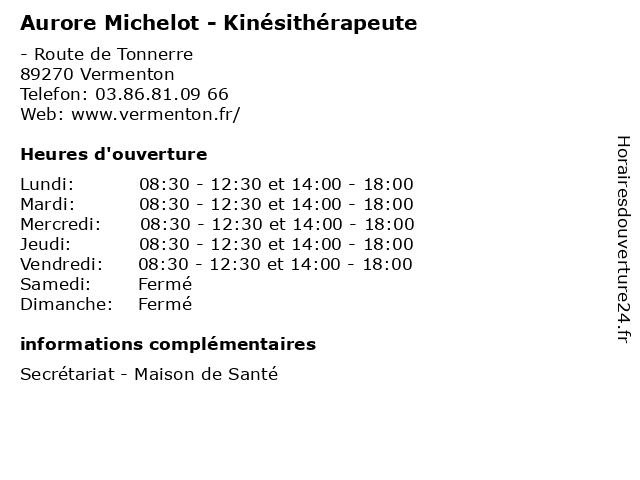 | Mardi | 08:30-12:30 et 14:00-18:00 |