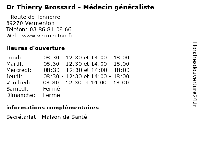 | Jeudi | 08:30-12:30 et 14:00-18:00 |
