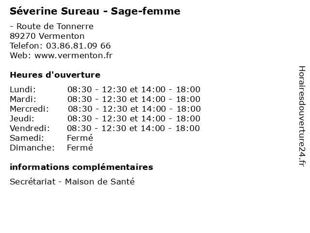 | Mercredi | 08:30-12:30 et 14:00-18:00 |
