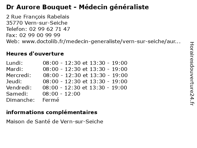 | Mercredi | 08:00-12:30 et 13:30-19:00 |