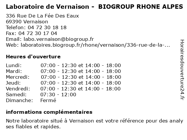 | Lundi | 07:00-12:30 et 14:00-18:00 |