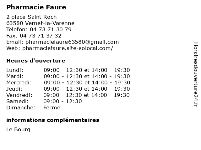 | Lundi | 09:00-12:30 et 14:00-19:30 |