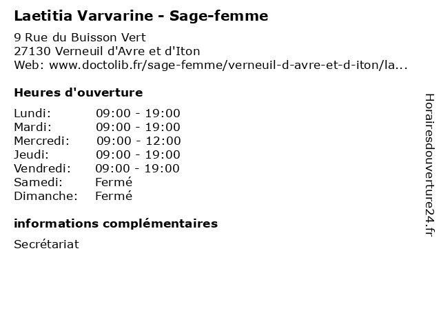 | Lundi | 09:00-19:00 |