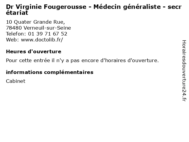 | Appeler Dr Virginie Fougerousse - Médecin généraliste - secrétariat | |