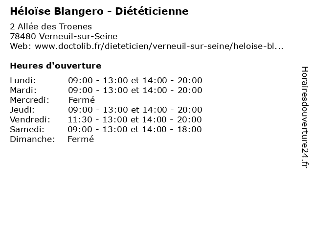 | Lundi | 09:00-13:00 et 14:00-20:00 |