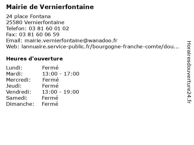 Termes de recherche pour Mairie de Vernierfontaine:de, administration, mairie, vernierfontaine, service public |