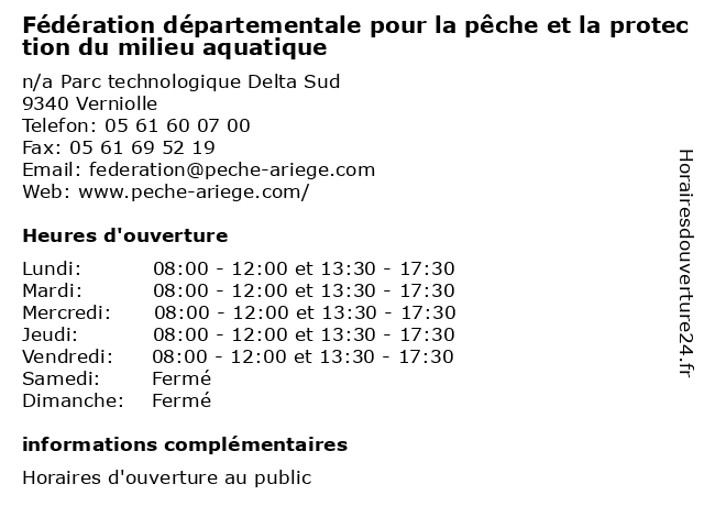 | Vendredi | 08:00-12:00 et 13:30-17:30 |